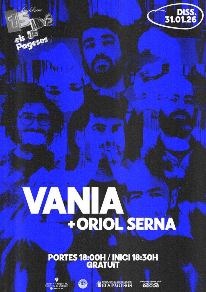 Vania és una banda del poble. De casa. De les que han crescut amb nosaltres, literalment. Cap el 2011 Amics i músics de qualitat amb molt recorregut; persones a qui tenim un afecte especial perquè formen part de la família d’Els Pagesos.